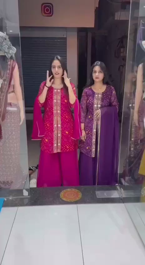 Step into festive elegance with this beautifully crafted kurti set featuring a rich Bandhani print on premium georgette fabric.